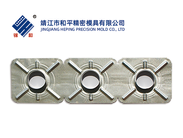 直徑:Φ9.52 翻邊高度:1.5~4.2 排數:12 級進形式:雙跳 孔距行距:25X21.65 片型:V型波紋/麻點